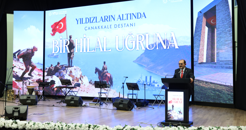 Rektörümüz Prof. Dr. Eyüp Debik'in konuşmasının ardından, törenin kültür-sanat bölümünde tarihi destan, müziğin dokunaklı diliyle salondakilere aktarıldı. YTÜ akademisyenleri Dr. Öğr. Üyesi Levent Kaya, Dr. Öğr. Üyesi Emrah Uçar ve Öğr. Gör. Dr. Erdal Şahin’in sahne aldığı dinletide, dönemin kararlılığını ve hüznünü yansıtan Çanakkale türküleri ile ruhları teskin eden tasavvuf musikisi eserleri icra edildi.
