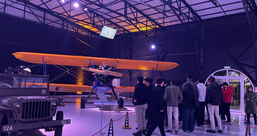 Öğrencilerimizin, ulusal ve uluslararası başarı yolculuklarında daha konforlu ve güvenli bir ulaşım sağlaması için hizmete sunduğumuz yeni otobüsümüz, ilk görevini başarıyla tamamladı. Uzay ve Aviyonik Sistemler Kulübü’nden (UASK) 30 öğrencimiz, yeni aracımızla Eskişehir’deki Türkiye’nin ilk ve tek yaşayan (uçabilir durumdaki uçaklara sahip) sivil havacılık müzesine teknik bir gezi yaptı.