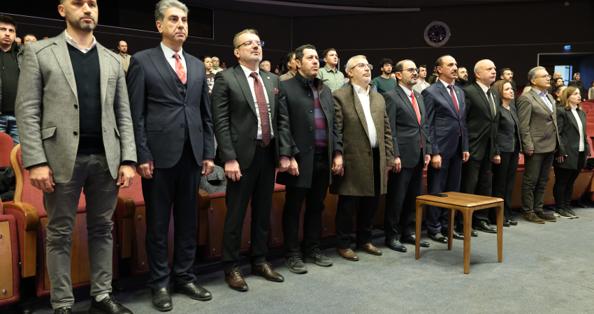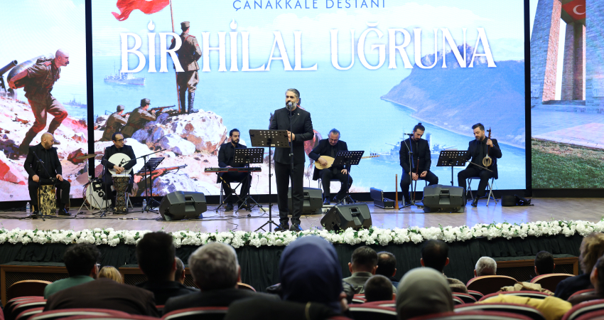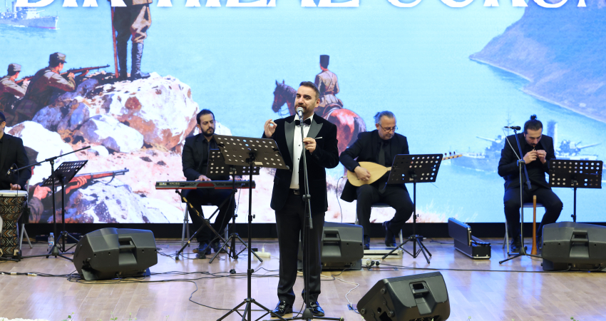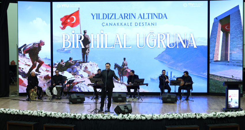 Rektörümüz Prof. Dr. Eyüp Debik'in konuşmasının ardından, törenin kültür-sanat bölümünde tarihi destan, müziğin dokunaklı diliyle salondakilere aktarıldı. YTÜ akademisyenleri Dr. Öğr. Üyesi Levent Kaya, Dr. Öğr. Üyesi Emrah Uçar ve Öğr. Gör. Dr. Erdal Şahin’in sahne aldığı dinletide, dönemin kararlılığını ve hüznünü yansıtan Çanakkale türküleri ile ruhları teskin eden tasavvuf musikisi eserleri icra edildi.
